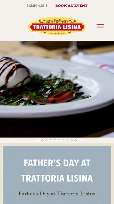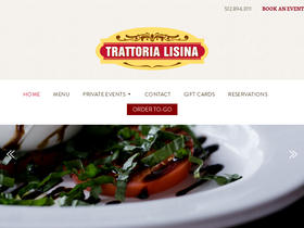Contact information, phone number, fax number, email address, location, directions, and hours for Trattoria Lisina authentic Italian cuisine in Driftwood, Texas.