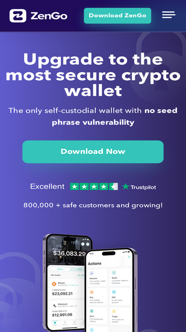 91%Zengo is the most secure crypto wallet: The only self-custodial wallet with no private key vulnerability. Powered by MPC, always recoverable, never hacked.