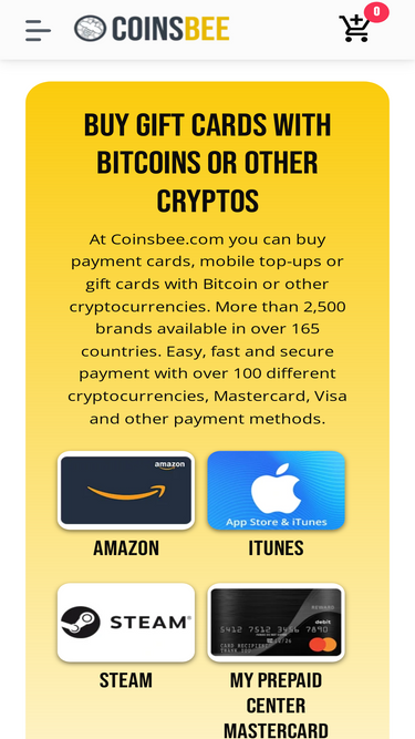 86%Discover the world of cryptocurrency with CoinsBee. Buy gift cards with crypto for all brands, 200 + coins accepted. Start your crypto journey with us today!