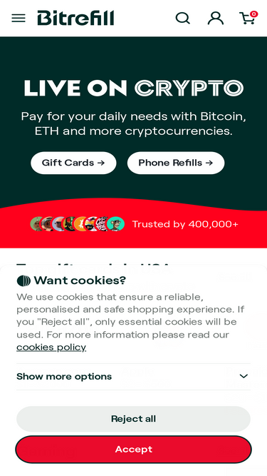 89%bitrefill (belize) - shop for gift cards, esims, and mobile recharges with btc, eth, usdt, usdc, and more. pay online with crypto in over 186 countries.