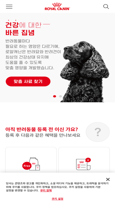 100%성장 단계별, 종별 다양한 무료 체험키트로 로얄캐닌의 특별한 영양 솔루션을 경험해 보세요.