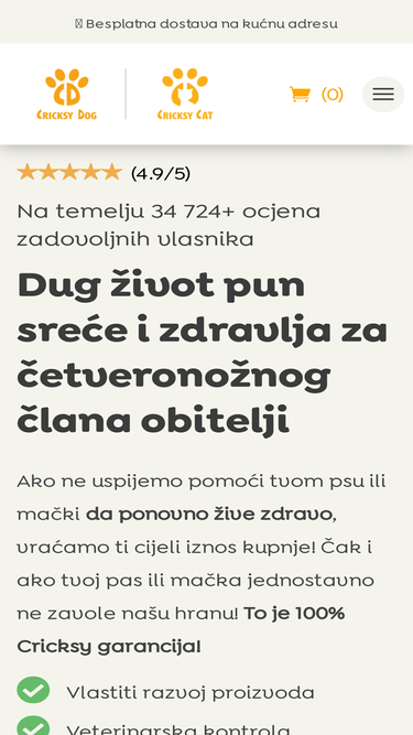 80%☆☆☆☆☆ (4.9/5) Na temelju 34 724+ ocjena zadovoljnih vlasnika Recenzije, Ocjene Ocijenili ste nas više od 30.000 puta. Pročitajte ih sve! Razvijamo vlastite proizvode uz odobrenje veterinara kako bismo jamčili kvalitetu CricksyDog. Svaki mjesec pomažemo tisućama pasa i mačaka da žive zdravo i sretno zahvaljujući našim proizvodima. Pridružite nam se i vi! Iznenadite svog ljubimca 4,9/5 ocjena Na temelju više od 30,000 recenzija. Naši kupci nas jako vole. Jamstvo za cijeli život Ako niste zadovoljni našim CricksyDog proizvodima, bez pitanja ćemo vam vratiti cijeli iznos. Izvrsne neovisne recenzije Na temelju više od 500 recenzija na Googleu, postigli smo ocjenu 4,9/5. Stručnost našeg veterinara jamstvo je kvalitete Mišljenje našeg glavnog veterinara, dr. Ottó Nagy, o CricksyDog: ☑️ Veterinar od 1983., izliječio je tisuće kućnih ljubimaca☑️ Zastupnik odgovornog i svjesnog držanja ljubimaca, stručnjak za prevenciju☑️ Specijalizacija: moderna prehrana, dijete, putničke bolesti i sezonske bolesti ——————– „Od 1983. radim kao veterinar i služim četveronožnim ljubimcima. Trenutno vodim vlastitu praksu u Kapuváru, gdje liječim kućne ljubimce. Moja specijalizacija je interna medicina i dijetoterapija pasa i mačaka. Svake godine pomažem stotinama pasa i mačaka s probavnim problemima, povraćanjem, proljevom i alergijama na hranu. Mnoge od tih problema može se spriječiti pravilnom prehranom! Iz veterinarske perspektive smatram da su hrane CricksyDog i CricksyCat potpuno pouzdane te zadovoljavaju sve kriterije za zdrav razvoj pasa i mačaka. To su potpune hrane, a njihove hipoalergene varijante izvrsne su za liječenje alergija na hranu. Toplo preporučujem CricksyDog i CricksyCat svim vlasnicima kojima je stalo do dugoročnog zdravlja svojih ljubimaca!” Vi ste poslali slike (nekoliko od nekoliko stotina) ☆☆☆☆☆ (4.9/5) Na temelju 34 724+ ocjena zadovoljnih vlasnika Vaše recenzije i ocjene Ovdje možete pročitati 25 najnovijih recenzija o našim proizvodima. Zašto ne biste pročitali
