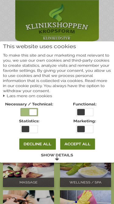 100%grossistpriser til akupunktører, massører, klinikker og til hjemmet. vi leverer alt inden for wellness og klinikudstyr med en bred vifte af produkter som: klinikinventar, kosmetikstole, massagebrikse, pedicure og manicure og meget andet.