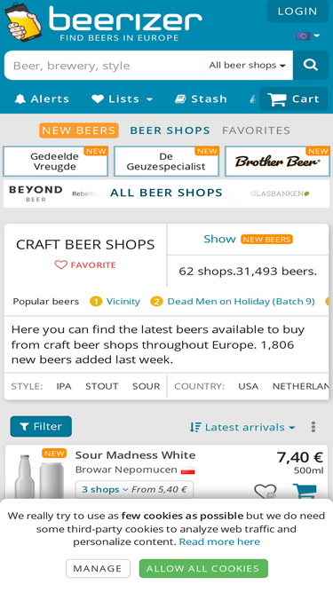 beerizer guides you to smarter beer purchases from craft beer shops around europe. helps you find new beers and shops online. site was previously called systemizr.se