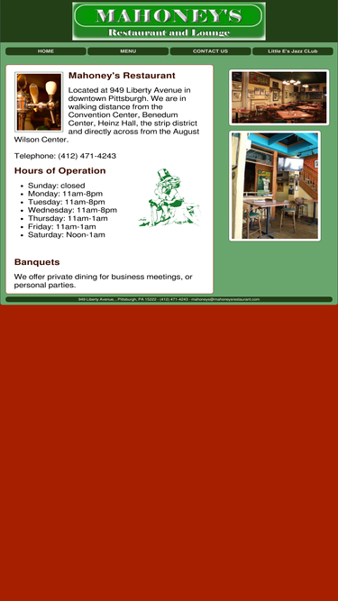 87%mahoney's restaurant, located at 949 liberty avenue in downtown pittsburgh. jazz club and music upstairs dining