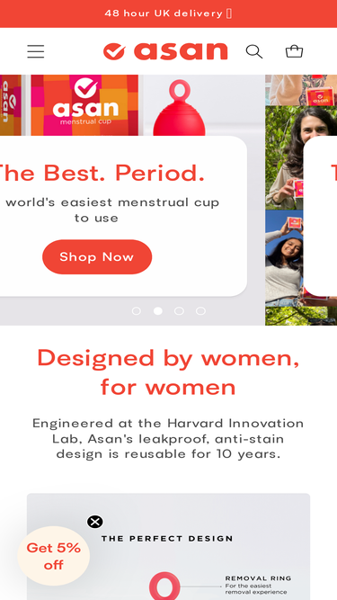 Designed by experts, the Asan cup is the highest quality reusable menstrual cup. It is made from 100% grade VI silicone and features a unique ring for easy removal. For every cup you purchase, Asan donates one for free to a person who cannot afford period products.