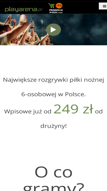 100%Piłkarskie ligi "szóstek" w 90 miastach. Od meczu podwórkowego do Reprezentacji Polski. Wpisowe: 0 zł. Gramy przez cały rok, na wybranym przez Ciebie boisku w twojej okolicy. Sam ustalasz termin meczu i wybierasz przeciwnika. Zapisać drużynę można w dowolnym momencie trwania sezonu. Wystarczy 6 zawodników.