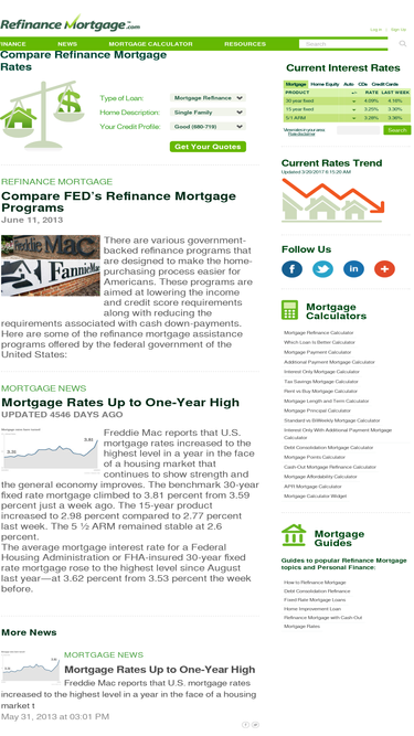 compare refinance mortgage rates and use our mortgage calculator to compare quotes on refinancing, home equity, debt consolidation and home improvement.