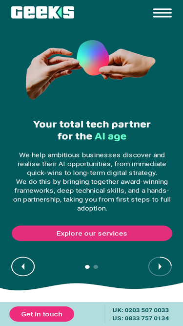 97%Explore Geeks Ltd's comprehensive FAQs covering AI strategy, bespoke software, industry-specific solutions, implementation, integration, and award-winning innovation. Learn how Geeks empowers businesses with clarity and results.