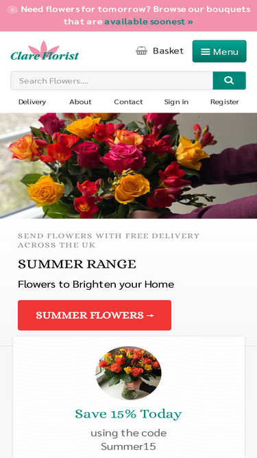 100%Next Day Flower Delivery, UK Wide! Send a smile with our beautiful flower bouquets and gifts. Fresh flowers delivered by Clare Florist