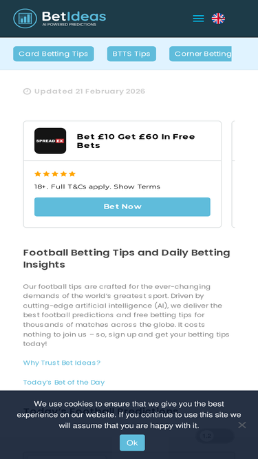 nvtips.com is a place where you can find free football betting predictions generated from an artificial intelligence models, based on the football data of more than 50 leagues for the past 20 years.