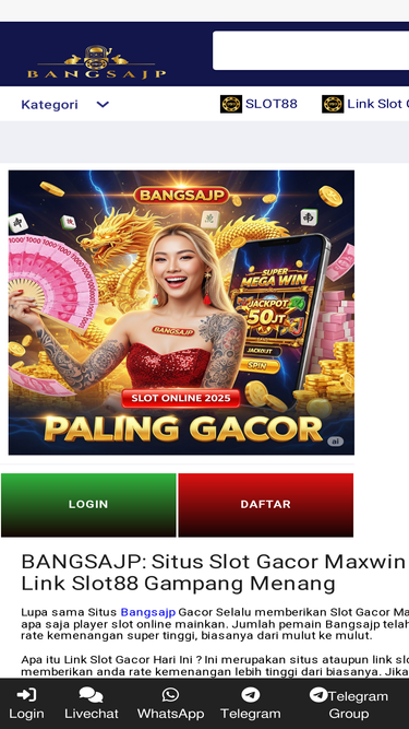 BANGSAJP adalah destinasi terpercaya untuk daftar link situs slot gacor hari ini. Dapatkan akses ke game Slot88 resmi dengan RTP maxwin dan jaminan gampang Jp.