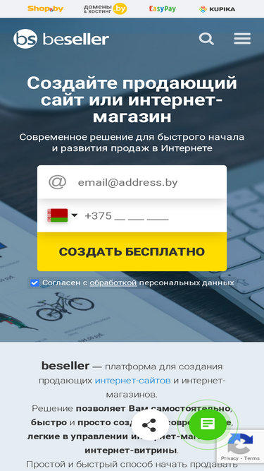 Создание продающих сайтов и интернет-магазинов. • Готовые, проверенные временем, простые в работе решения для быстрого начала продаж • Домен 3-го уровня вида VashSait.shop.by, хостинг и все возможности платформы beseller включены в стоимость тарифов • Бесплатная помощь и консультации при настройке и запуске сайта • Нет затрат на разработку и поддержку сайта • Стоимость владения сайтом от 25,60 рублей в месяц.