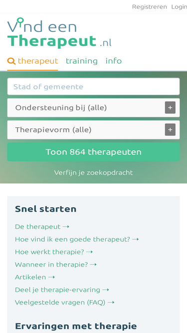 vind eenvoudig een geschikte therapeut bij jou in de buurt via ons handig overzicht. lees ook alle info over therapie, psychotherapie, klachten enz.