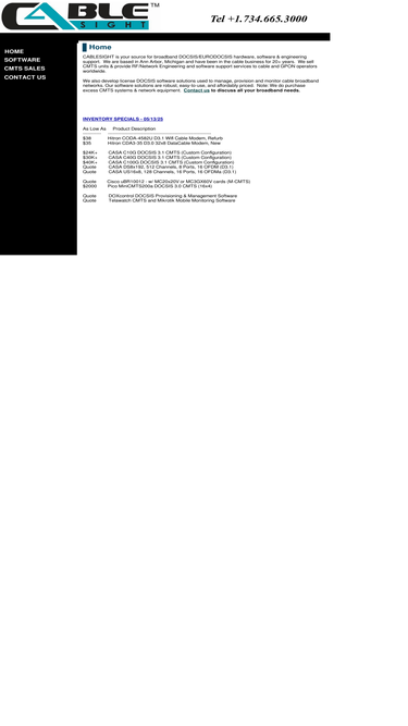 Cablesight is based in Ann Arbor, Michigan, our offices are located in Dominos Farms office park. We are a provider of cable modem provisioning for service providers. DoxControl, product of cablesight, offers software solutions to manage and monitor broadband networks