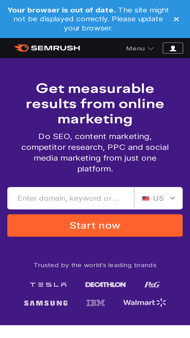Sign up for Semrush's free trial. Try our SEO audit, keyword research, AI Visibility Toolkit, and more.