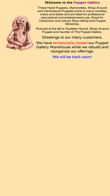 over 700 hand, string and finger puppets ideal for education and entertainment. great for classroom and library story-telling and puppet ministries.