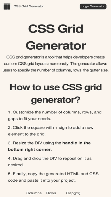 90%CSS Grid Generator - a user-friendly tool designed for web developers to effortlessly create customizable CSS grids for seamless web development.