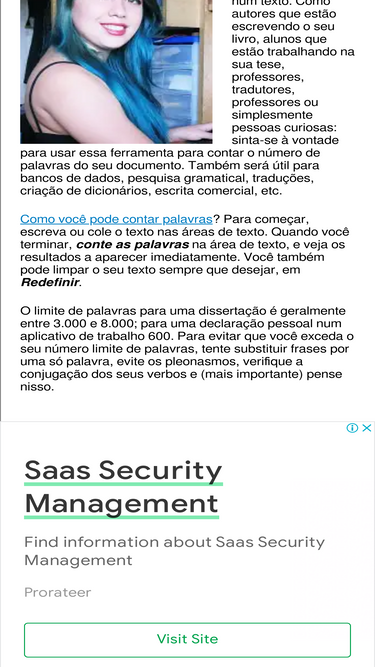 Software online gratuito que permite contar os caracteres de um texto com e sem espaços, contar palavras, contar letras, frases, parágrafos e obter a frequência de palavras-chave.
