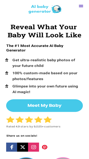 55%discover how your baby might look with our free ai baby generator. use our advanced ai baby face generator to see your future baby's face. try our baby ai generator today!