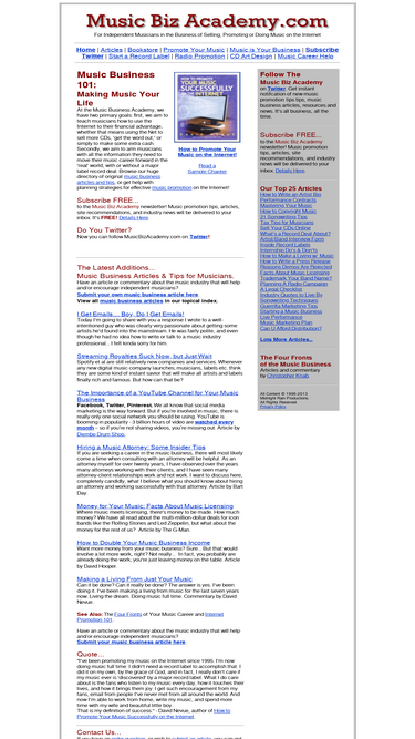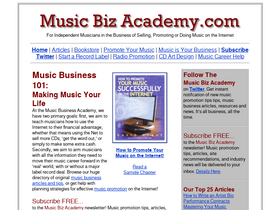 85%the music biz academy is a valuable tool for musicians promoting or selling their music on the internet. extensive music promotion tips, real-world music career advice, music biz articles and a comprehensive resource directory for independent artists.