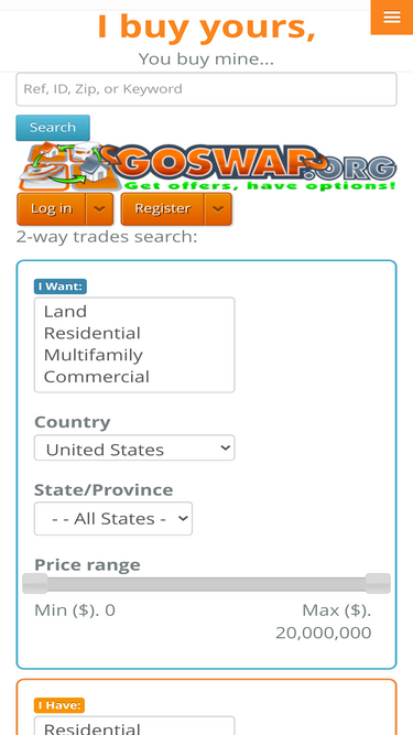 Online real estate trade. Exchange real estate with the REExchange patented, secure system that allows you to exchange and get exactly what you want, even cash!