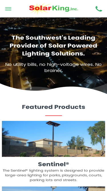 SolarKing is the Southwest's leading provider of solar lighting systems since 2002. Our patented solar lighting systems are designed for streets, parks, mailboxes and more. No utility bills, no high voltage wires.