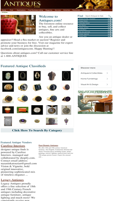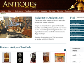 antiques.com is the premier resource to find, buy, sell, and collect antiques of all kinds, including antique furniture, antique glass, jewelry and many more.