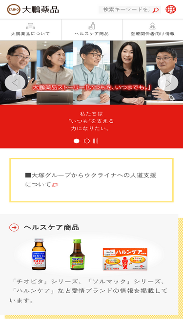 大鵬薬品工業株式会社のオフィシャルウェブサイトです。「私たちは人びとの健康を高め 満ち足りた笑顔あふれる 社会づくりに貢献します。」を企業理念に、世界中の人びとに貢献できる企業を目指します。