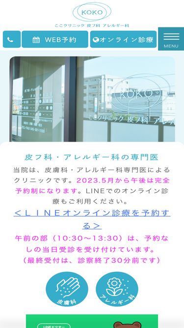 日吉駅から徒歩10分にある「ここクリニック」です。当院では、アトピー性皮膚炎などの湿疹、かゆみなどの、皮膚科の病気や、花粉症、アレルギー性鼻炎などのアレルギー診療、美容皮膚科など、皮膚科・アレルギー科の専門医の院長が、患者さんの悩みに寄り添い、最適な医療を届けます。
