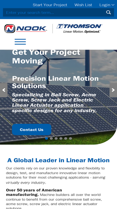 92%Nook Industries manufacturers linear motion solutions including, precision ball screw, acme screw, screw jack, linear actuator, and electric cylinder products.