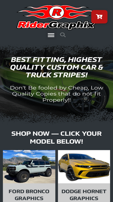 buy automotive vinyl graphics, car stripes and truck decals for modern muscle cars! includes chevy camaro, ford mustang, f-150, dodge challenger, dodge charger, ram 1500 and much more!