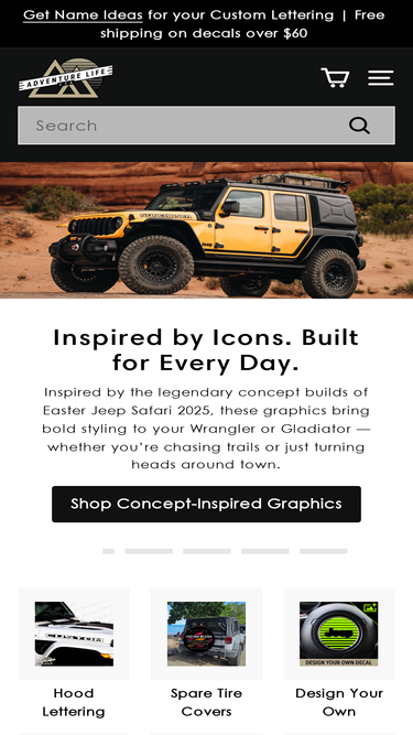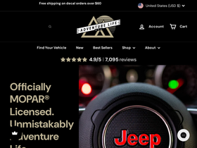 Adventure Life creates premium Jeep, Toyota, and Ford decals and vehicle graphics built for adventure. MOPAR-licensed, rugged, and custom-designed, our products deliver standout style, long-lasting durability, and a perfect fit. Personalize your rig and hit every trail with confidence.