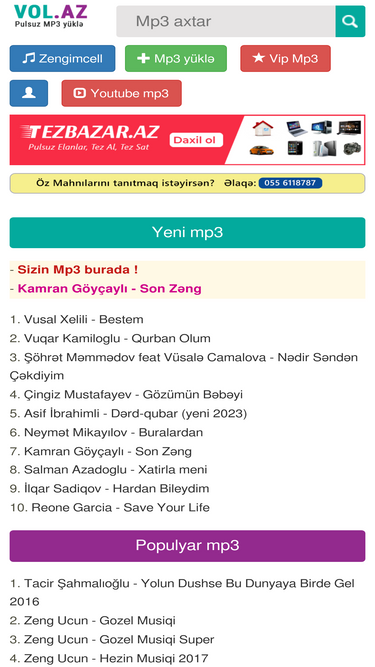 100%vol.az - mp3 yukle, azeri mahnilar, turk mahnilari yukle pulsuz 2023