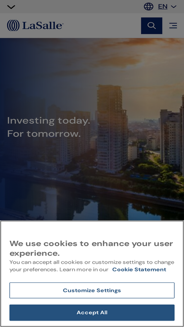 90%Investing today. For tomorrow. With 240 years of real estate and 40 years in investment expertise, LaSalle leads the world in real estate investment management.