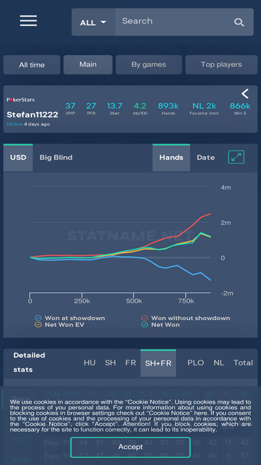 online poker player statistics service. 5 most popular rooms, a unique game graph, hud and a large number of different stats. do not miss your fish!