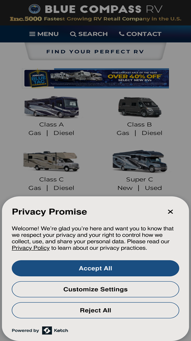 85%blue compass rv - a leading recreational vehicle retail company in the united states with a focus on providing an outstanding experience for recreational vehicle customers in new and used sales, service and parts, and customer financial services.