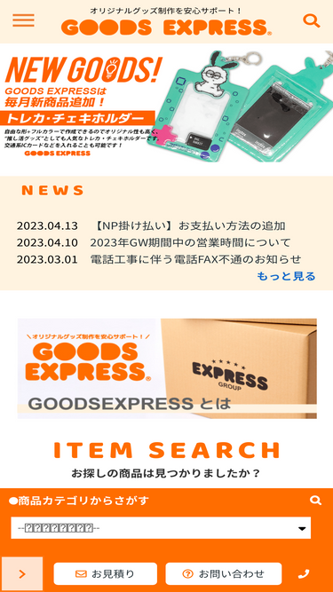 高品質!低価格!短納期!小ロットOK!スマホ関連グッズ、シリコンバンド、ラバーコインケースなどオリジナルグッズ制作なら100種類以上!アーティストグッズ、 キャラクターグッズ、スポーツグッズなどあらゆるシーンに合った商品の提案も行っております!GOODS EXPRESS
