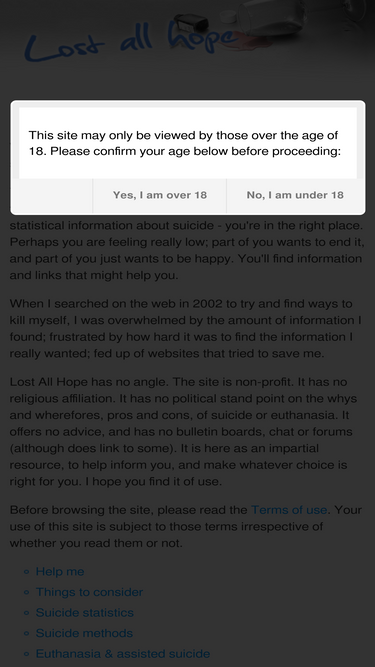 A Non-Profit, Impartial Guide to Suicide Information Lost All Hope – Your Comprehensive Suicide Resource Lost All Hope is a dedicated resource providing comprehensive information about suicide, including methods, statistics, and support links. Help Me support links Welcome to Lost All Hope One of the most comprehensive suicide resources on the web. You may be […]