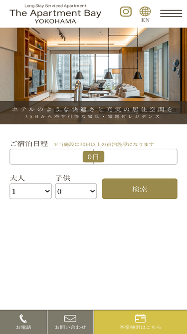 クレジットカード決済で30日以上の滞在を直接ご予約可能なハイグレードサービスアパートメント。横浜でのセカンドハウス・長期出張・仮住まいに。ウェステインホテル建物内(6階~12階)に40m²台のstudioから150m²台の3bedまで全9タイプ。ゲストの方にハイグレードなサービスと施設を提供いたします。