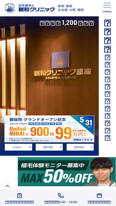 親和クリニックは薄毛治療専門クリニックです。メスを使用せず傷跡も残らない、短時間で高密度な自毛植毛を実現。自毛植毛は医師や技術力だけでなく医師・看護師・スタッフの実績や経験が非常に重要となります。植毛技術、医療設備、専門医療チームスタッフ、全てが揃った親和クリニックが自信と責任を持って、薄毛のお悩みを解決します。