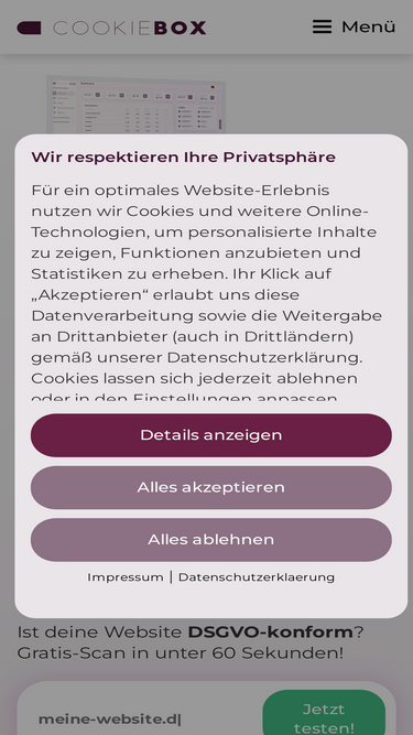 COOKIEBOX hilft Unternehmen, die Vorgaben der DSGVO auf vielen Websites zu erfüllen – automatisiert, preiswert, auf einer Plattform