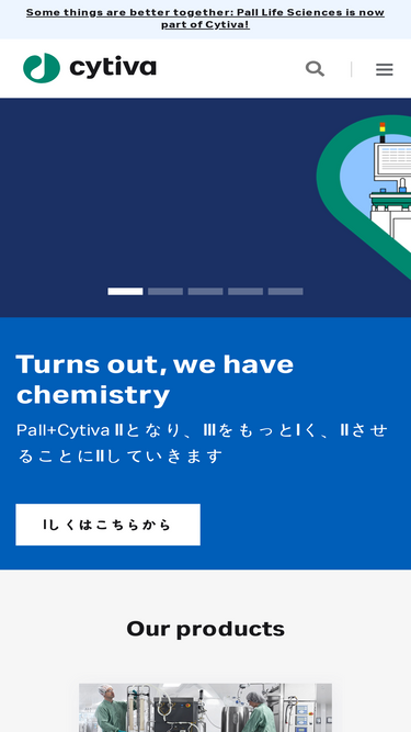 いのちを守る治療法に手が届き、人々の健康が大きく変わる世界を目指してーーCytiva(サイティバ)は、治療法の開発・製造の進歩とその加速をサポートする、テクノロジーとサービスのグローバルプロバイダーです。以前はGEヘルスケアライフサイエンスの一部でしたが、2020年4月より、数百年前までにさかのぼる豊かな遺産と、新たなスタートをあわせ持った存在となりました。