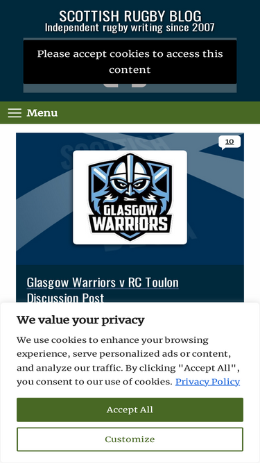 84%Who we are Suggested text: Our website address is: https://glasgowwarriors.org. Comments Suggested text: When visitors leave comments on the site we collect the data shown in the comments form, and also the visitor’s IP address and browser user agent string to help spam detection. An anonymized string created from your email address (also called a […]