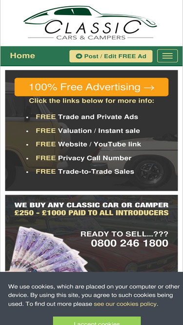 The one-stop market place to BUY and SELL your Classic Cars and Campers. 100% FREE advertising for all Trade and Private sellers.