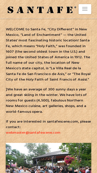welcome to santafe.com, where we bring you the best of santa fe, new mexico, including events, things to do, restaurants, arts, culture, music and more.