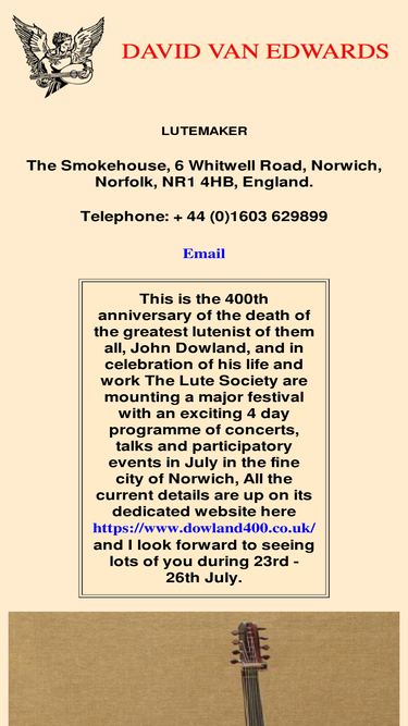 an illustrated catalogue of all the lutes that i make, covering the whole history of the lute in western europe. also bows for historical instruments of the viol and violin family from all periods.