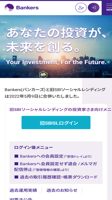 94%バンカーズ(旧Bankers(バンカーズ))が運営する貸付型(融資型)クラウドファンディング(ソーシャルレンディング)は、みなさまからお預かりしたお金を企業に融資し、企業から支払われた利息から投資家に分配金をお渡しする新しい投資サービスです。