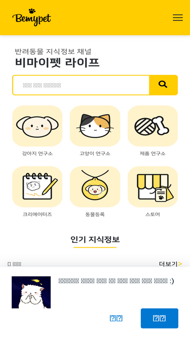 반려동물 지식정보 채널 비마이펫 라이프입니다. 강아지 연구소, 고양이 연구소, 반려공감, 위키백과 등 '우리 아이'의 행복한 시간을 위한 지식정보를 만듭니다.