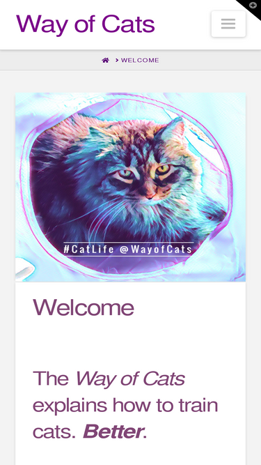 89%The Way of Cats explains how to train cats. Better. The Way of Cats helps in caring for cats. Smarter. The Way of Cats gets people cat love. Bigger. It doesn’t matter the happy/sad state of a cat relationship at this moment. My techniques can make this cat relationship more harmonious, communicative, and affectionate than it is now. I want ... Read More